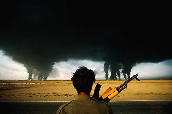 Эскиз автомата Калашникова победил на всесоюзном конкурсе проектирования автомата, который проводился в 1947 году (поэтому у него цифра 47 в названии), и уже через два года началось массовое производство автомата. Во время Холодной войны началось распространение оружия и новинок технологии СССР почти в 20 регионах влияния, включая Ирак. На фотографии: курдская девушка в северном Ираке с автоматом защищает свою семью от нападения иракских военных.