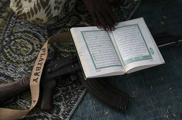 Суфийский мусульманин во время на религиозного занятия. Суфии в Сомали, обычно миролюбивые и терпимые, только недавно взялись за оружие, для того чтобы защитить себя от нападений исламистской
