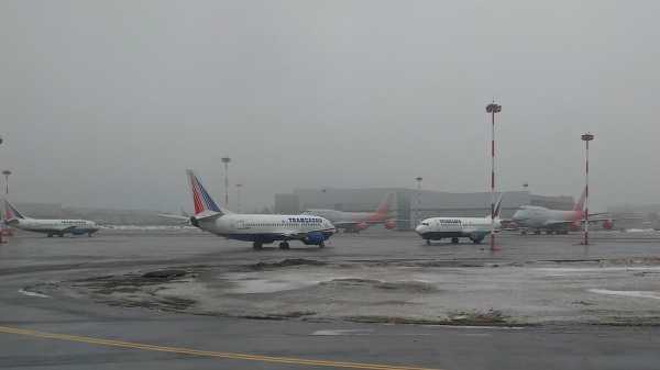 Туман и низкая облачность. Но ярко красный Джамбик «России» впечатляет, как и его брат – Тигролет, которого мы изучали еще из терминала.