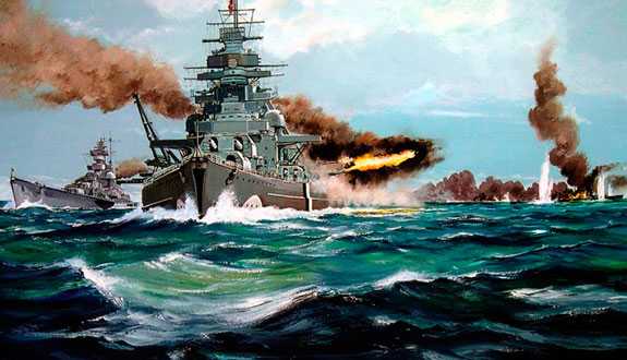 Ещё один знаменитый корабль времён Второй мировой войны — линкор германского военного флота, близнец «Тирпица». В мае 1941 года в Датском проливе потопил британский флагман — тяжёлый крейсер «Худ». Трое суток весь британский флот охотился за ним. Сперва британские торпедоносцы с авианосца «Арк-ройял» лишили немецкий корабль рулевого управления, а 27 мая 1941 года «Бисмарк» был потоплен в ходе артиллерийской дуэли, при этом погибли 1995 человек из его команды.