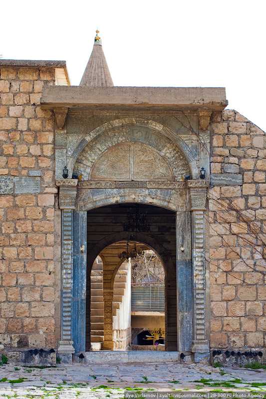 04. Вход в храм. Не территории нельзя ходить в обуви. Перед входом езиды целуют порог.