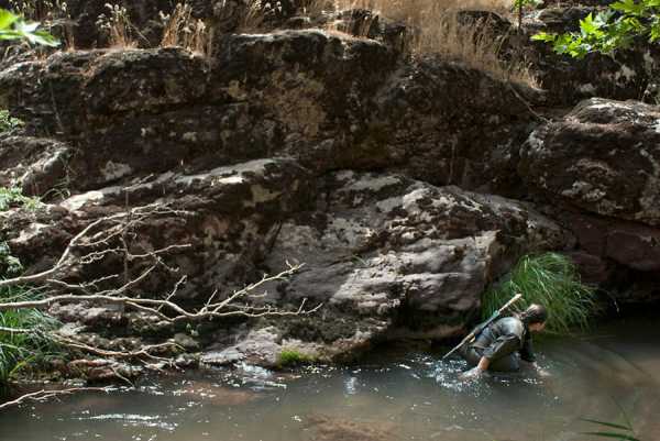 Одна из пуль подожгла сухую траву. Те, кто находятся на базе, стараются как можно скорее потушить огонь, пока базу не обнаружили.