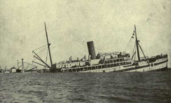 МС Британия, вскоре после удара торпеды возле Gilbraltar, 9 ноября 1918