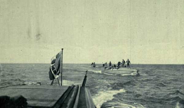 Австралийские моряки перевозят военнопленных из немецкого крейсера Эмден, на берег на острове Кокос