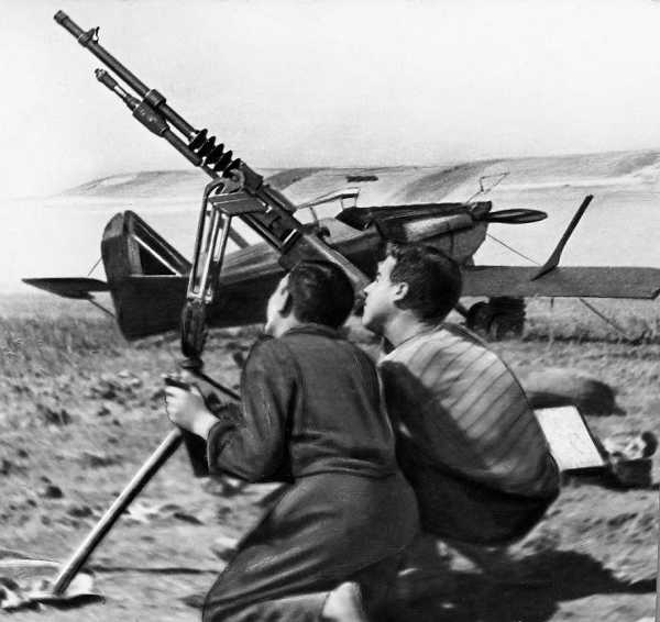15.На фото стрельба из зенитного пулемета по самолетам мятежников