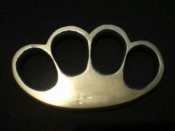 Несколько дополнительных советов. Можно оставить получившийся кастет полированным, но латунь имеет свойство быстро окислятся и зеленеть. Пачкая руки и карманы. Так что кастет лучше покрасить. Хоть он и будет выглядеть не так модно и красиво, но он станет гораздо практичнее. Лучше всего красить в черный цвет текстурной краской для металла. Во первых кастет будет меньше заметен в темноте(когда им чаще всего пользуются) и ваш противник не заметит кастет до тех пор, пока он не встретится с его челюстью. Во вторых(в случае чего) снимать отпечатки пальцев с текстурной поверхности на несколько порядков сложнее, чем с полированного металла.