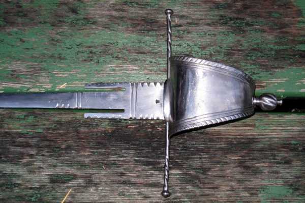 Сокрушитель мечей. Зубцы по обе стороны предназначались для того, чтобы захватить меч противника и затем сломать одним резким движением кистью руки.