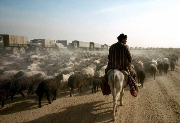 23. Пастух смотрит на уходящую колонну советских войск.