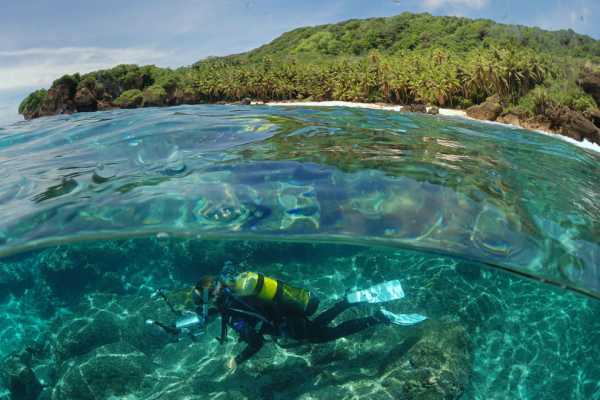 На острове тысячи мини-лагун. Например, недалеко от деревни Лондон есть и такое место, где глубина не превышает 30 см и уйти можно сколь угодно далеко.