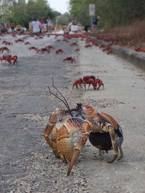 Каждый год более 100 миллионов особей бегут из муссонного леса к побережью. Стоит напомнить, что площадь острова составляет всего 135 км2! В этот период крабы повсюду. Они заполоняют дома местных жителей, улицы, дороги. А через какое-то время уже их потомство мигрирует обратно.