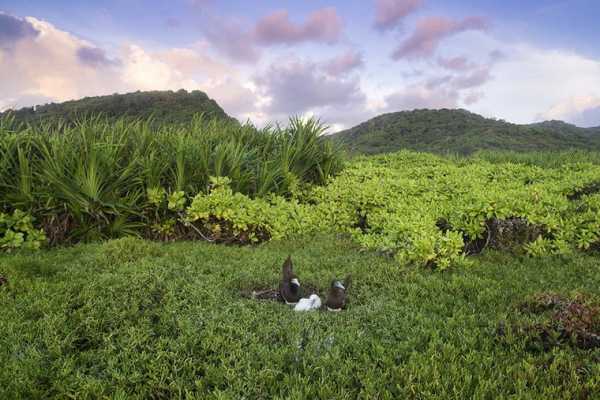 Взять, к примеру, ту же плухею душистую, появившуюся тут во время Второй мировой войны. Она довольно-таки быстро распространилась по атоллу. А якорец ладанниковый? Его тоже завез на остров человек. В результате эти растения образовали густые чащи и «ковры», являющиеся очень удобными для гнездящихся птиц.