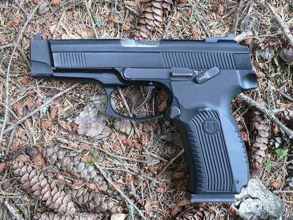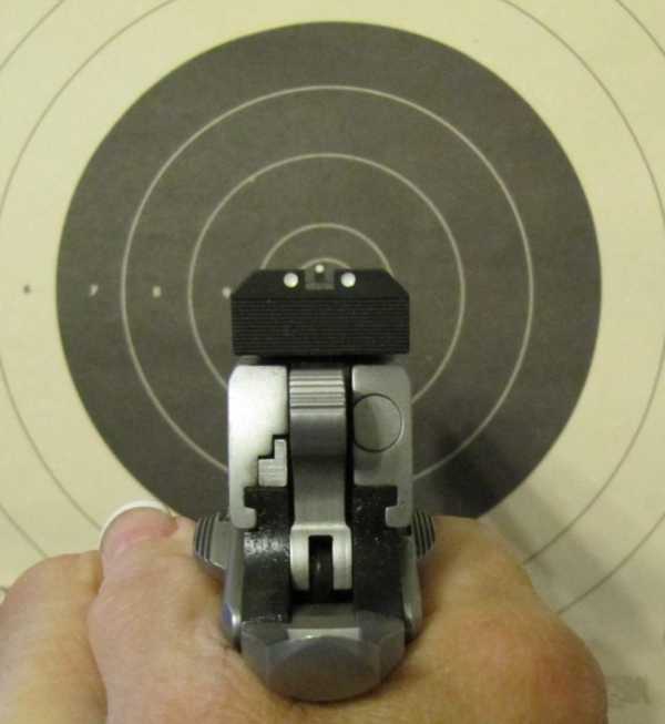 Вид со стороны курка — качество обработки не блещет. Или блещет не в лучшем смысле этого слова? Белые точки на целике тоже не радуют глаз своим разбросом по местуСпортивные стрелки охотно брали как вариант с пластиковой рамкой, так и со стальной, самостоятельно «доводя» пистолеты, насколько это было возможно в рамках технических возможностей и законодательной базы. Приходилось мириться даже с низким для спортивного пистолета ресурсом — 4000–5000 заявленных производителем выстрелов, что по меркам IPSC откровенно мало. Хотя из уст в уста передаются легенды о «Викингах» с настрелом за 100 000, большинству стрелков оставалось радоваться, если пистолет без проблем настреливал хотя бы заявленный ресурс, — как было сказано выше, с послепродажным сервисом у «Викингов» было, мягко говоря, не очень, и любая поломка фактически выводила пистолет из строя.