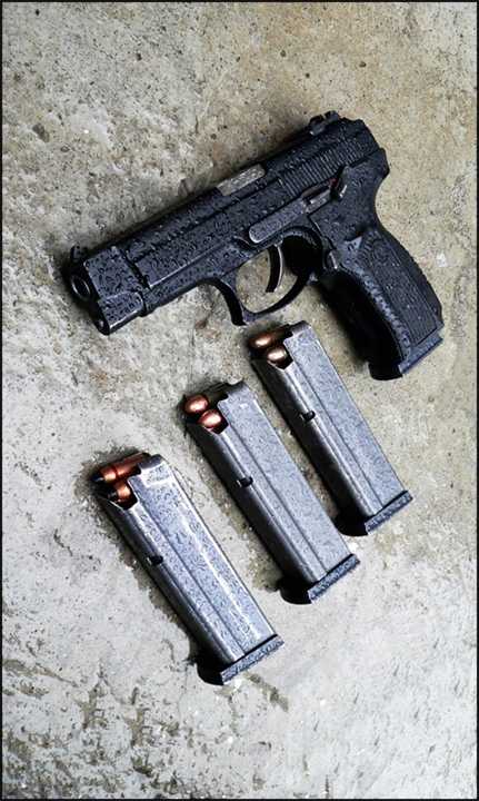 Ударно-спусковой механизм также имеет особенности и позволяет вести бой самовзводом и с предварительным взведением курка. Рама пистолета стальная, а рукоятка – пластмассовая.
