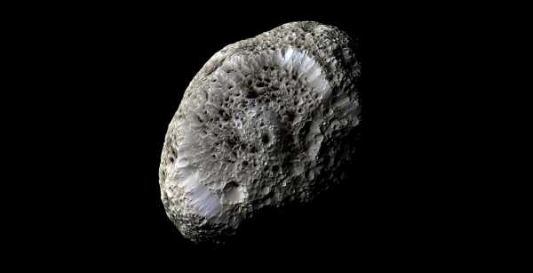 Спутник Сатурна — Гиперион. Снимок был сделан космическим аппаратом Кассини в видимом свете на расстоянии примерно 38 000 км 31 мая 2015 года.