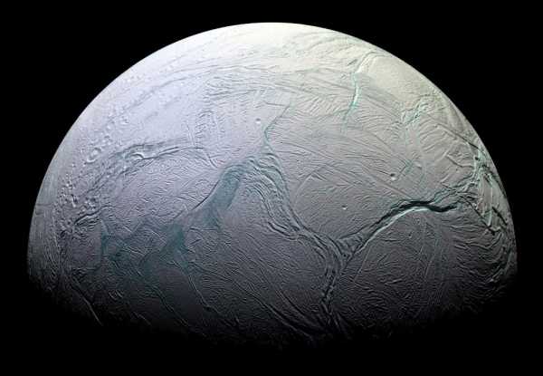 1. Ледяная луна Энцелад на фоне колец Сатурна. Энцелад отражает больше солнечного света, чем какое-либо другое тело Солнечной системы. В 2011 году учёные NASA на «Enceladus Focus Group Conference» заявили, что Энцелад — «наиболее пригодное для такой жизни, какую мы знаем, место в Солнечной системе за пределами Земли». (Фото JPL | Space Science Institute | NASA):