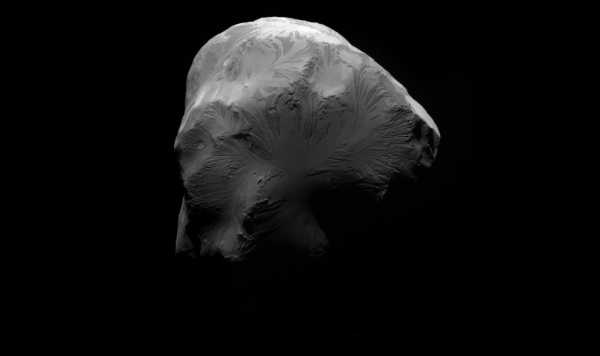 Спутник Сатурна Прометей сфотографированный с расстояния приблизительно 34000 километров. Прометей еще называют «пастухом» кольца F. Гравитационное поле Прометея создаёт изломы и петли в кольцах и спутник как бы «крадёт» из них материал.