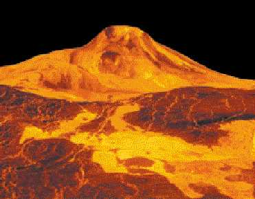 Вулкан Маат на поверхности Венеры. Компьютерное моделирование с использованием радарных снимков и данных альтиметрии. Снимок НАСА.