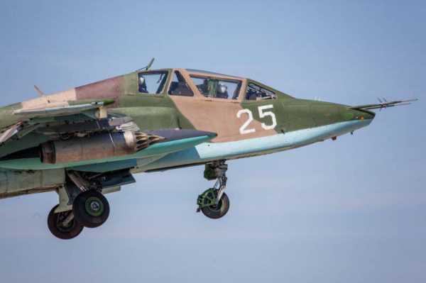 Су-25 – советский бронированный дозвуковой штурмовик, предназначен для непосредственной поддержки сухопутных войск над полем боя днем и ночью при визуальной видимости цели, уничтожения объектов с заданными координатами круглосуточно в любых метеоусловиях. В российских войсках получил прозвище «Грач».