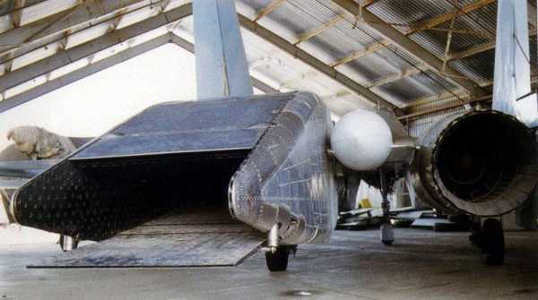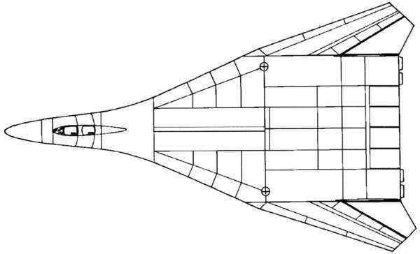 Еще одной оригинальной идеей стали т.н. двухтрубные турбореактивные двигатели. Альтернативное название системы, более полно отражающее ее суть, – двигатели с изменяемой степенью двухконтурности. Два двухтрубных ТРД разработки Рыбинского КБ моторостроения должны были обеспечивать самолету расчетную тягу на уровне 22000-23000 кгс каждый. Двигатель с изменяемой двухконтурностью имел в своем составе два модуля, каждый из которых являлся самостоятельным ТРД. Принцип работы такого двигателя выглядит следующим образом. Основной модуль через общий воздухозаборник нагнетает атмосферный воздух. В режиме максимальной двухконтурности весь воздух поступает в основной модуль, где разделяется на два потока: один идет в камеру сгорания, другой минует ее. Для понижения степени двухконтурности открываются специальные заслонки за первыми ступенями основного компрессора и часть воздуха перепускается во второй модуль. Одновременно с этим закрывается выпускное устройство второго контура первого модуля. Таким образом, оба модуля ТРД начинают работать в одноконтурном режиме, обеспечивая необходимую тягу.