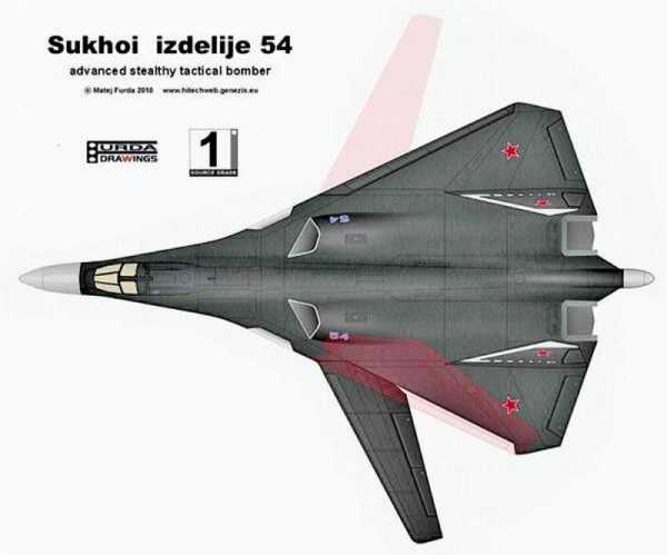 Через несколько лет после начала работ по проектам семейства Т-60, ориентировочно в середине восьмидесятых, КБ Сухого начало разработку еще одного бомбардировщика, являющегося дальнейшим развитием одновременно Т-60 и Т-60С. «Объект 54» имел те же самые цели, что и предшественники, но ощутимо отличался по конструкции и бортовому оборудованию. В проекте «54» конструкторы снова вернулись к идее крыла изменяемой стреловидности. Кроме того, по своим размерам этот самолет был похож на предыдущий Т-60. Благодаря использованию интегральной компоновки уменьшение длины самолета и размаха крыла на 2-3 метра не привело к потери во взлетном весе. Даже наоборот, бомбардировщик «54» был ощутимо тяжелее первого варианта Т-60. При сухом весе в 50 тонн максимальная взлетная масса примерно равнялась ста тоннам, из которых 15 приходилось на вооружение.