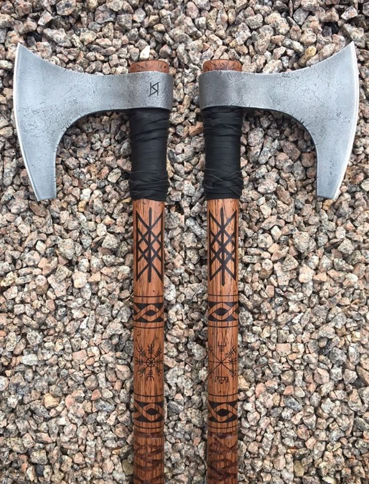 Одним из орудий викингов был датский топор. Широкое лезвие крепилось на древко длинное. Древко достигало 2 м. Для применения нужны: