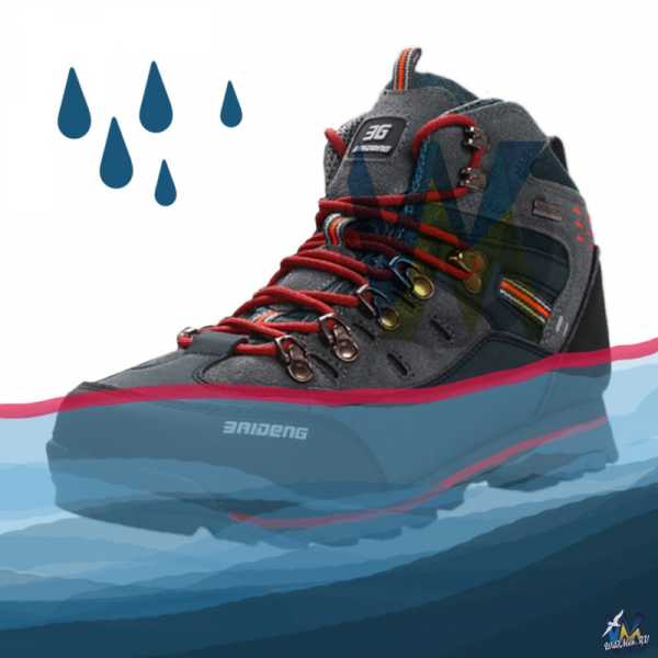 Выше красной линии всё становится печально, в ботинок начинает сочиться водаШнурки очень хорошие, толстые, круглые, плотные. Петли и крючки металлические. Петли сделаны с шарнирами, т.е. подвижные, а крючки хорошо держат шнурки, шнурки как-бы защелкиваются в крючки. Длина шнурков нормальная.