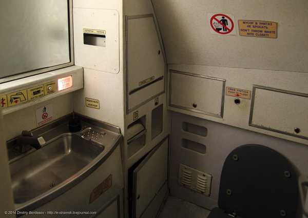 Две туалетных комнаты расположены в хвосте самолета и одна в носовой части.