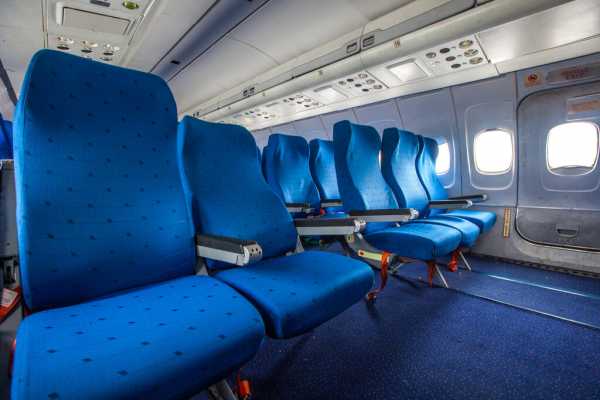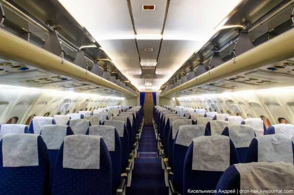 Теперь пассажирский салон. Самолет в разных компоновках рассчитан на 152 — 180 пассажирских кресел. Салон оборудован системой кондиционирования, работающей на стоянке от ВСУ, а при запущенных двигателях — от двигателей.