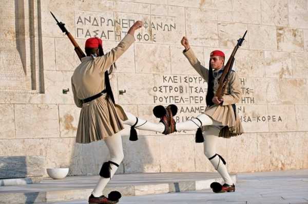 Это странно, но нередко в самую смешную форму наряжают солдат почетного караула, которые охраняют вполне серьезные и даже святые места. Вот так выглядят греческие эвзоны, марширующие у могилы Неизвестного солдата в Афинах. Смеяться над памятью павших могут только очень циничные люди. Но не всем туристам удается не рассмеяться при виде этих парней в совершенно клоунских одеяниях и смешными движениями.