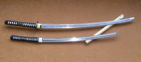 Длинный меч Katana и короткий меч Wakizashi. Самураи носили и то и другое, комбинацию из длинного меча и короткого меча называют Daisho.