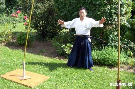 Проверка меча: Мастер Матсуба разрезает жерди бамбука с помощью катаны. Раньше проверка меча