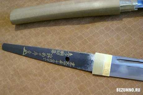 Золотая надпись на 400-летнем мече означает, что результатом проверки меча было рассечено 3 тела