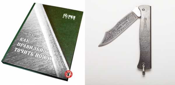 На фото – слева книга о заточке ножей, справа французский складной нож Дук-Дук (Douk-douk)