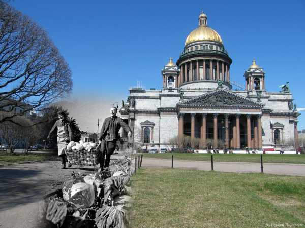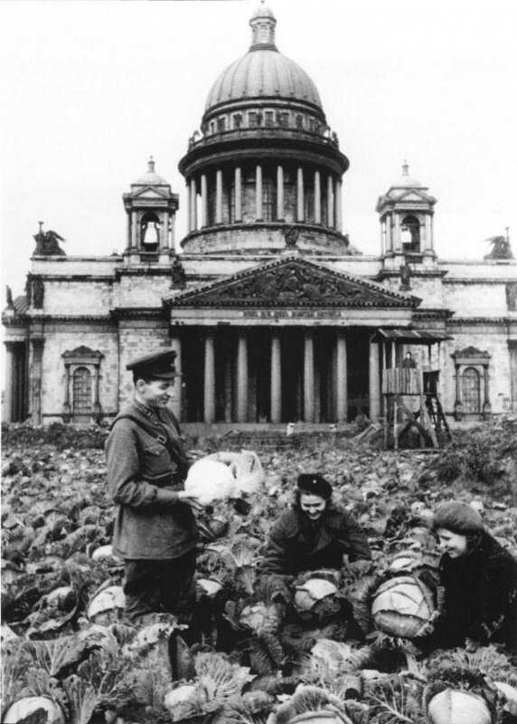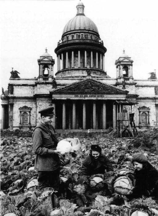 Сбор урожая капусты у Исаакиевского собора в Ленинграде