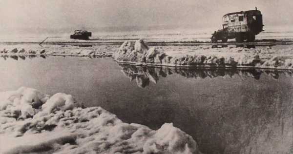 56. Движение транспорта по «Дороге жизни» в марте 1943 года.
