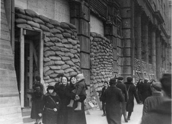 подальше от фасада разрушенного бомбардировкой дома. Октябрь 1942 г.