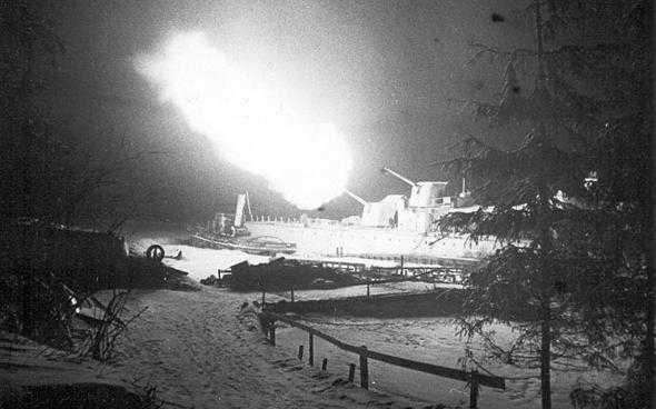 82. Советский легкий крейсер «Киров» в Ленинграде в первую блокадную зиму.