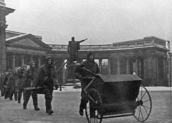 соответственно.Обессиленные жители блокадного Ленинграда по дороге за водой.Cемья Опаховых на прогулке по ленинградской улице. Май 1942 года.Невский проспект зимой в блокадном Ленинграде. Дом Энгельгардта на Невском проспекте частично разрушен немецкой авиабомбой.Ленинградский школьник Андрей Новиков дает сигнал воздушной тревоги.Палата детской больницы с новогодней елкой в блокадном Ленинграде. Зима 1941-1942 годов.Две женщины в разрушенной артобстрелом ленинградской квартире.Отличницы 4-го класса 47-й школы г.Ленинграда, награжденные медалями «За оборону Ленинграда».Жители Ленинграда у здания биржи встречают новость о снятии блокады города. Январь 1944 года.Ленинградцы на Суворовской площади смотрят салют в ознаменование снятия блокады. 27.01.1944 года.