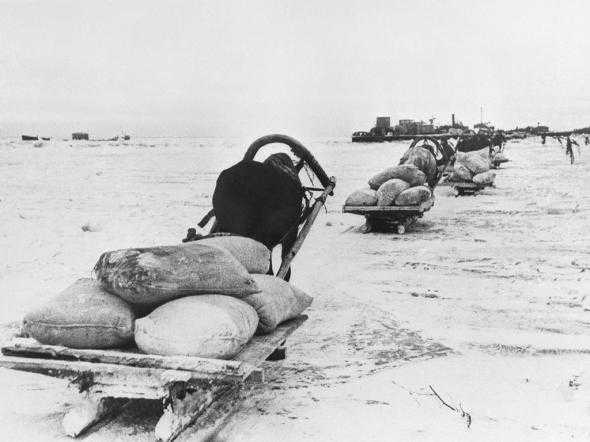 47. Первый санный обоз отправляется в блокадный Ленинград по льду Ладожского озера. 24.11.1941 г.