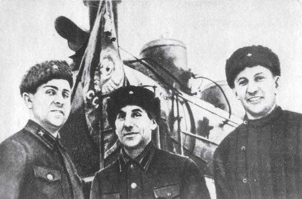 «Большую землю». Слева направо: А.А. Петров, П.А. Фёдоров, И.Д. Волков.