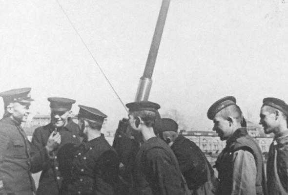 72. Расчет носового 45-мм орудия советской подводной лодки Щ-407 во время обучения. Ленинград. 17.04.1942 г.
