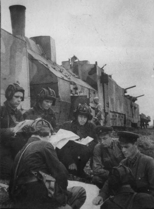 64. Постановка боевой задачи советским офицерам рядом с бронепоездом «Балтиец».