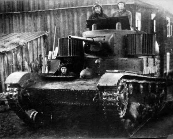 66. Советский танк Т-26 из состава 55-й армии с громкоговорящей установкой для ведения устной агитации. Ленинградский фронт.