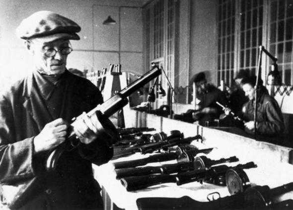 80. Сборка автоматов ППД на одном из ленинградских заводов. 1941 г.