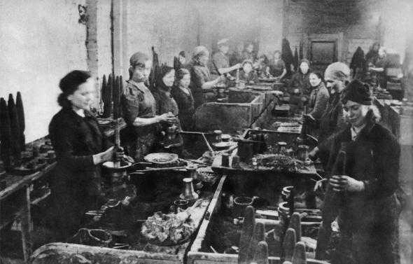 84. Изготовление артиллерийских снарядов на одном из ленинградских заводов. Июль 1943 г.