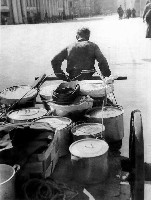 96. Доставка обеда служащим одного из ленинградских предприятий в мае 1942 года.
