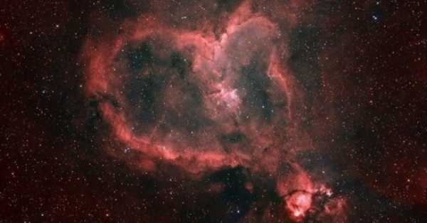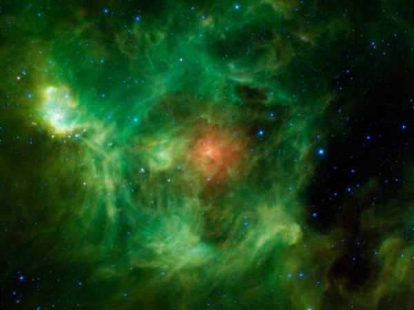 Новая фотография туманности в зеленом и красном облаках пыли действительно напоминает праздничный венок.