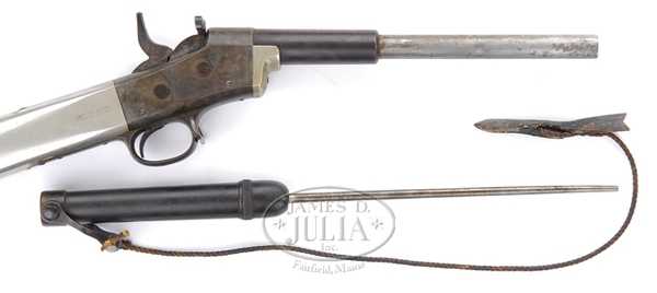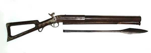 В 1846 и 48-м году соответственно Оливер Аллен (Oliver Allen) запатентовал разрывной и простой убойный гарпуны, предназначенные для стрельбы единого ружья, корторое само по себе ничего особенного не представляло — обычный крупнокалиберный (около дюйма или чуть более) капсюльный гладкоствольный «бландербуз». Интерес представлял только достаточно необычный металлический приклад, выглядящий отнюдь не на середину 19-го века …