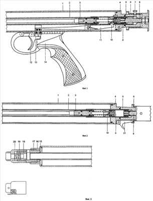 На фиг.1 изображена средняя и задняя часть пневматического ружья в положении заряжания. В эти части входят: ресивер 1, ствол 2, поршень 3, задняя пробка 4, задняя упорная втулка 5, крышка вакуумного насоса 6, предохранитель (болт) 7, шток вакуумного насоса 8, вакуумная камера 9, основной клапан 10, шептало, с возвратной пружиной 11, спусковой крючок 12, гайка, втулка, шток спускового механизма 13, рукоятка 14.