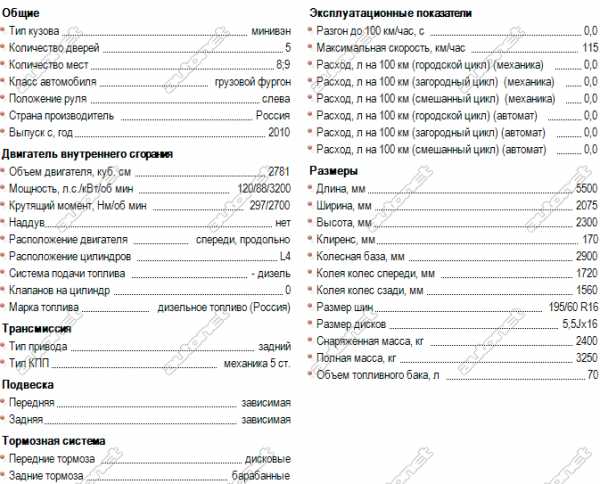 | ГАЗ 322132 2.9 | минивэн (5 дв.) | 2890 см3 | 107 л.с. | 2010 – н.в. |